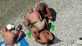 Nude Beach - Big Naturals Mature BBC MMF Threesome