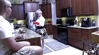 Scorching Mature Grandma MILF first masturbates with a faux-cock then rides a Big Black Cock BBC guy for a cumshot as facial cum