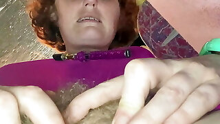 Mom almost wets herself before shoving her vag in your face and pulls her sexy hairy outer lips apart by using her pubes