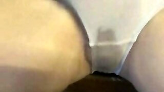 Chubby milf pisses and displays dirty white panties. Large cunt and close-up. Homemade fetish. ASMR. Amateur.