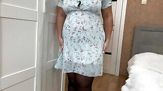 Busty mature milf in pantyhose talks messy as she strips, teases and fucktoys