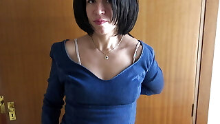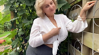 Hot housewife Lukerya loves to create glamour clothes with her own hands in her free time. Fishnet dress and unfinished s