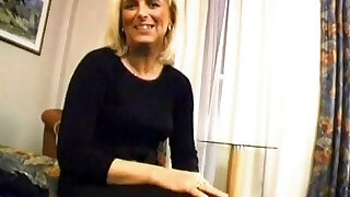 Insane housewife demonstrates you exactly how to turn her on by running her thumbs along her pubic hairs