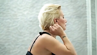 Tattooed mature with gigantic tits and pierced nipples, Ashton Blake is about to practice an orgasm